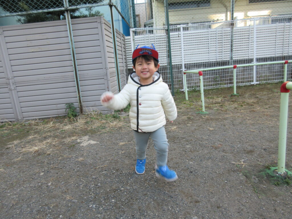 冷たい空気の中でも鬼ごっこやかけっこをして身体をたくさん動かし、